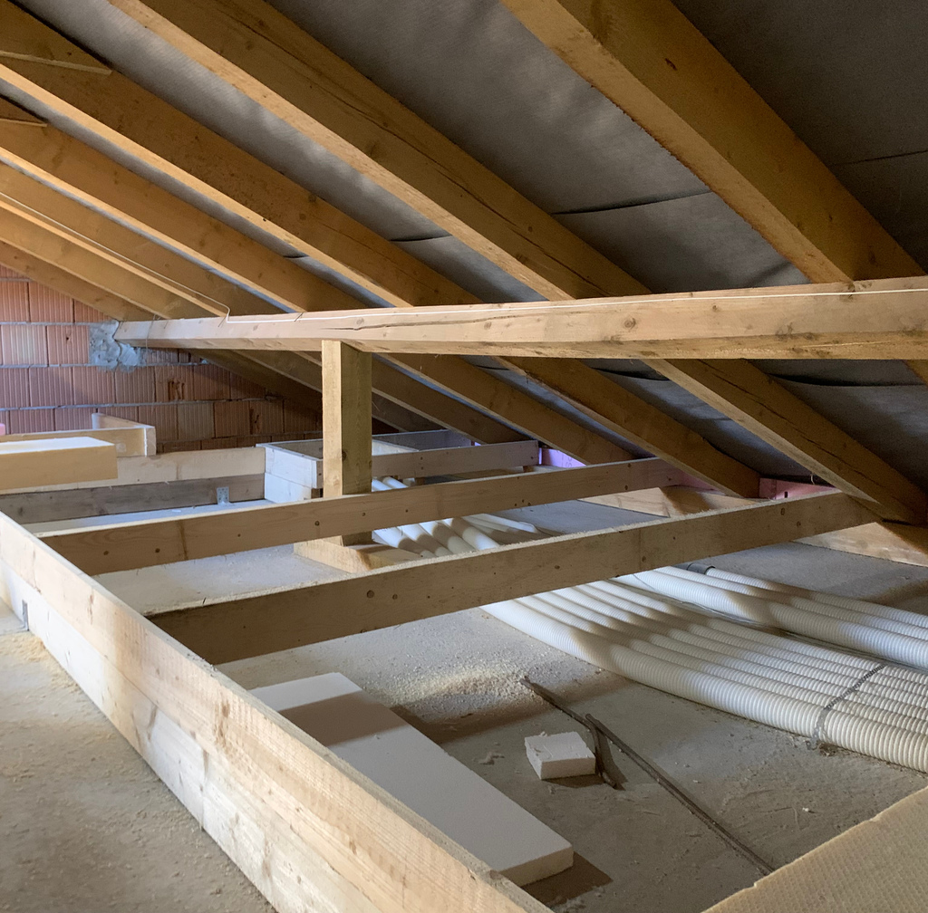 Abban az esetben, ha a padlásteret kihasználjuk vagy szervízjáratot szeretnénk, gondoskodni kell megfelelő járórétegről a betonfödémen. Cégünk által lehet kérni előre le gyártott járható elemeket aminek méretei 200x67,5 cm magassága 25 cm ami nútféderes OSB lappal van borítva, igény esetén össze is lehet toldani.